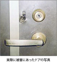 ↓※図1サムターン回しとはドアにドリルなどを使って穴を開け、金属の棒を使ってドア内側のつまみ(サムターン)を回転させて解錠してしまう手口のことです
