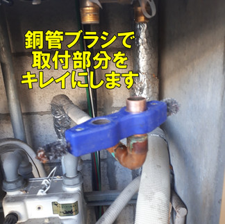 配管を取り外し、給湯銅管を切断して本体を撤去します