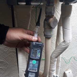 給水、給湯管の補修。ガス検知器でガス漏れをチェック。